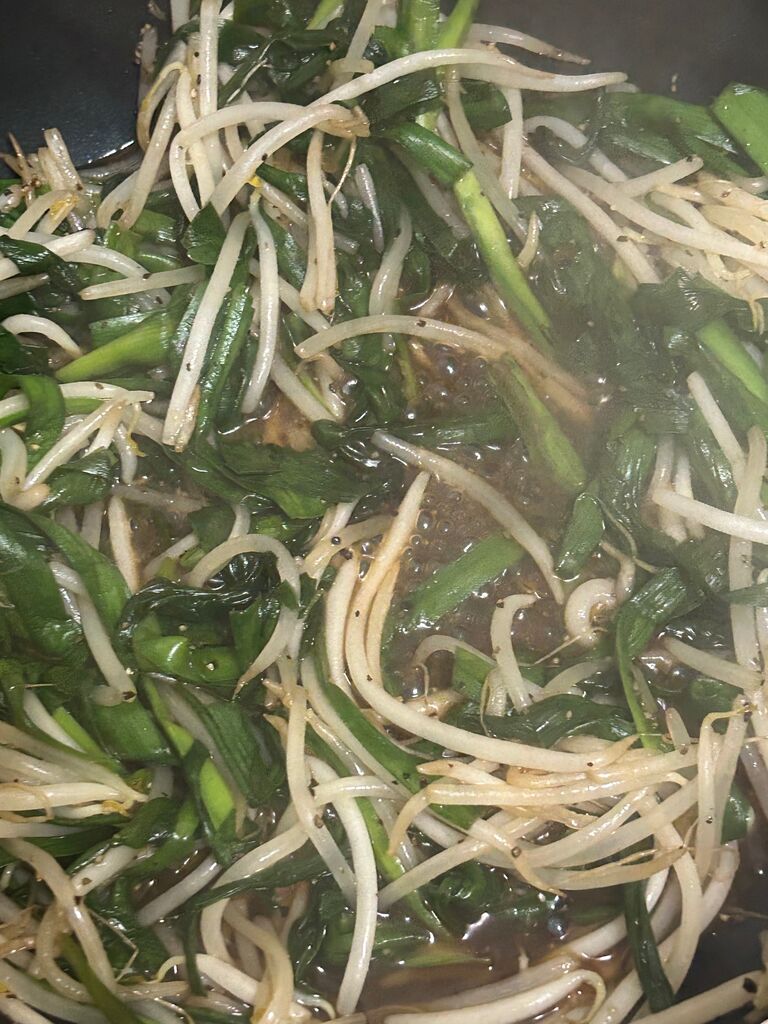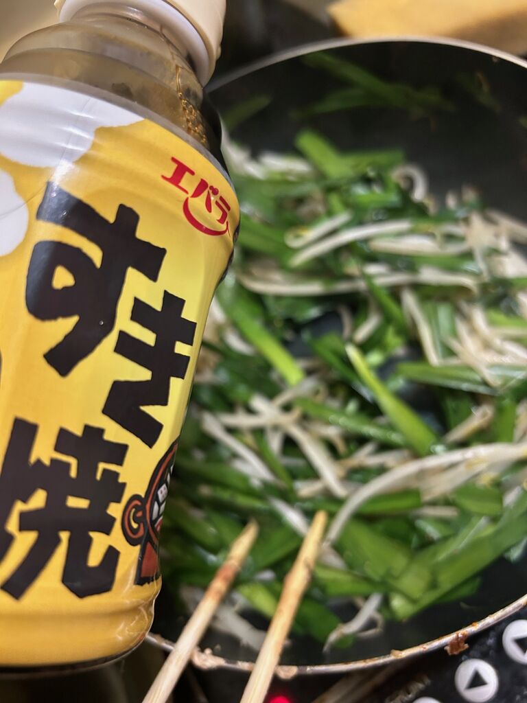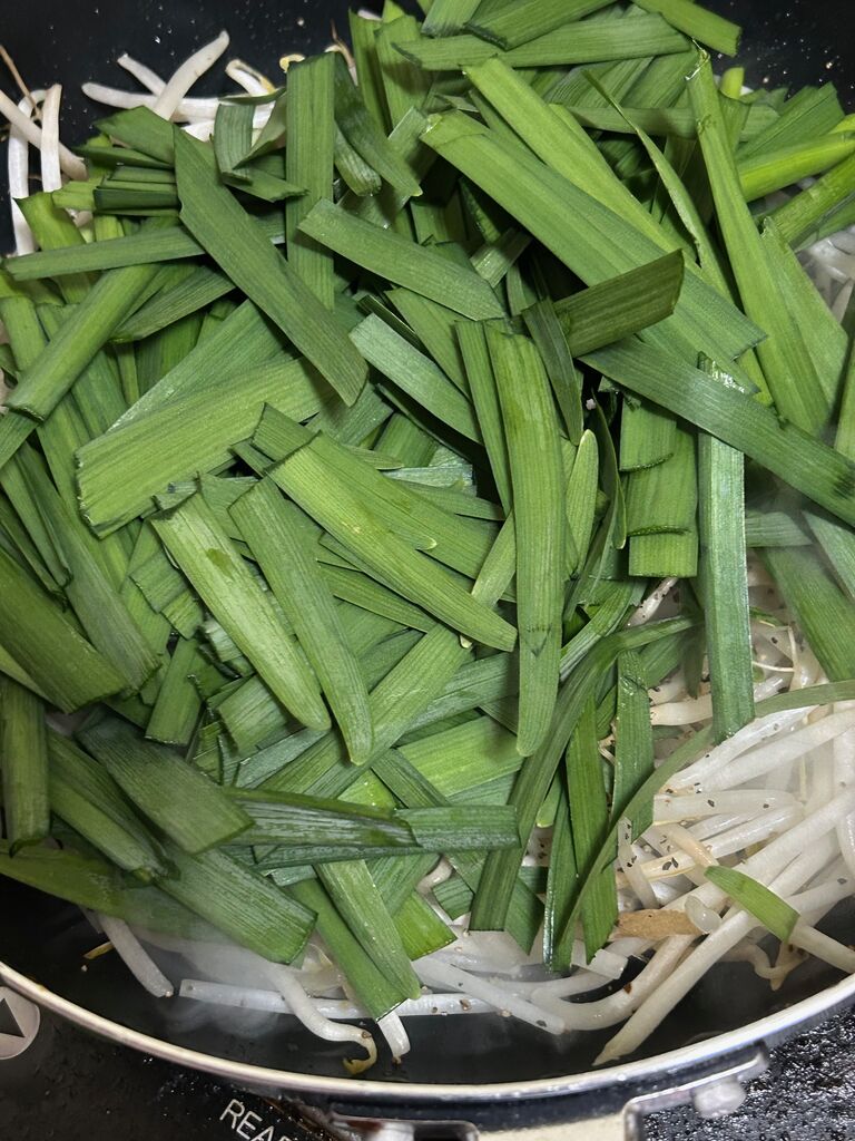 ニラともやし、別で炒めます!